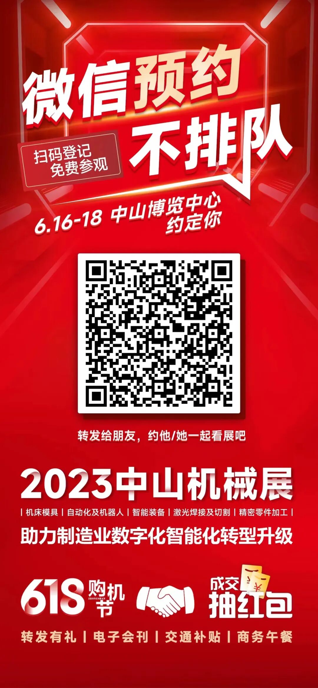 中山機(jī)械展歷經(jīng)二十二屆,現(xiàn)已發(fā)展成為珠江西岸地區(qū)高端精密制造行業(yè)盛會。展會如同構(gòu)架在產(chǎn)購雙方的一座橋梁,為買賣雙方提供了面對面溝通與了解的機(jī)會。2023年6月16日-18日,2023第二十三屆中山機(jī)床模具及塑膠機(jī)械展覽會、中山工業(yè)自動化及機(jī)器人裝備展覽會(簡稱:中山機(jī)械展)將在中山博覽中心(中山市博愛六路)盛大開幕! 6月15日前完成預(yù)登記即可獲得VIP禮品一份